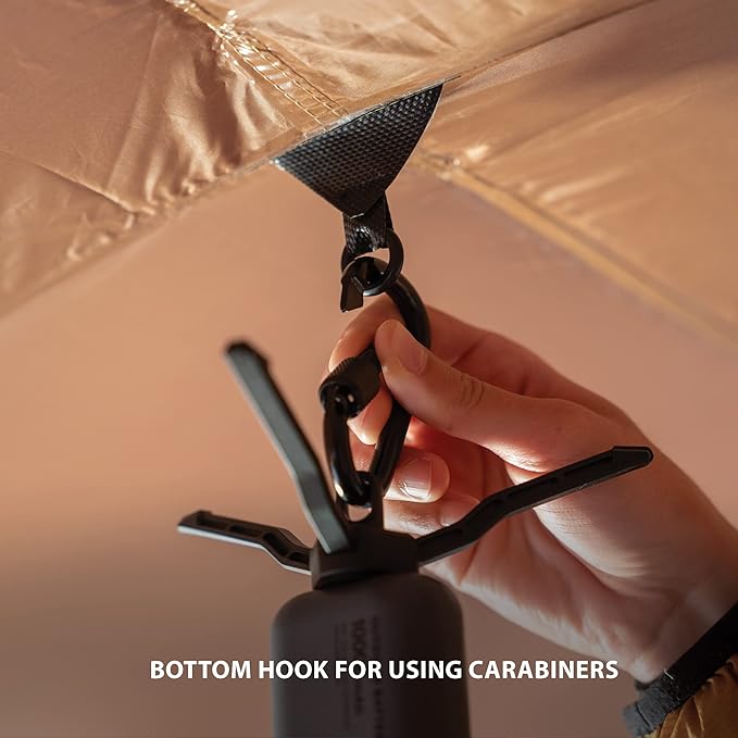 - MINI TRIPOD WITH HOOK - The Lamp also comes with a mini tripod that can be used as a stand and has a loop attached to the bottom for connecting carabiners for mounting to various items such as tents, trees, backpacks, and more.