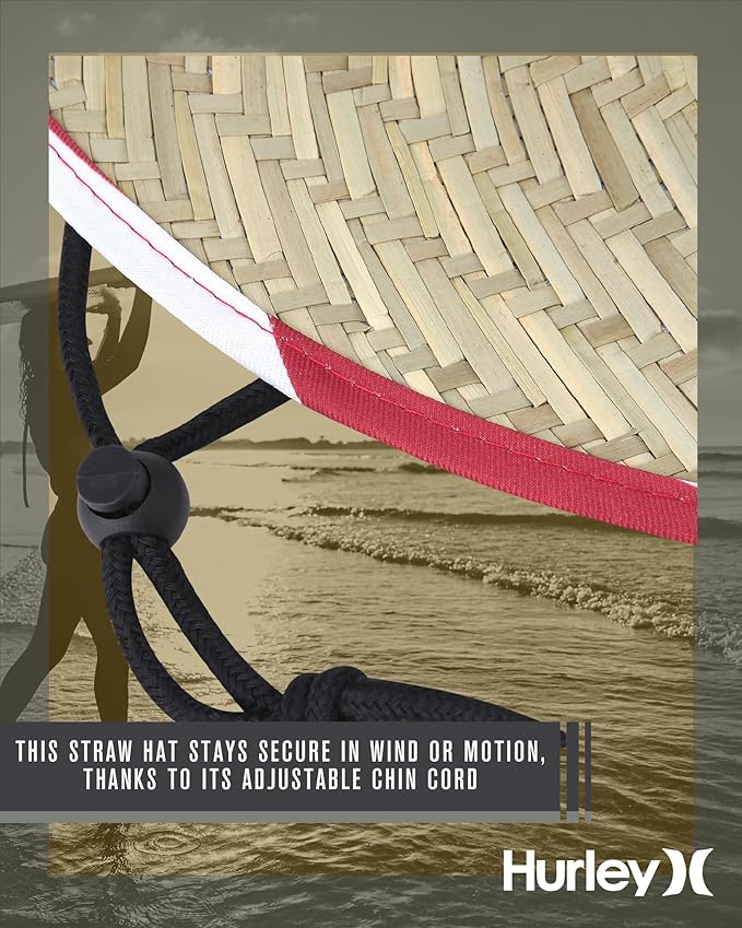 - DURABLE WEAVE PATTERN DESIGN: This Hurley Men's Straw Hat features a classic wide-brimmed design that's crafted from premium woven straw, offering both style and lasting durability. Whether you're relaxing on the beach or standing watch as a lifeguard, this sun hat not only looks great but stands up to the elements, keeping you shaded and cool.