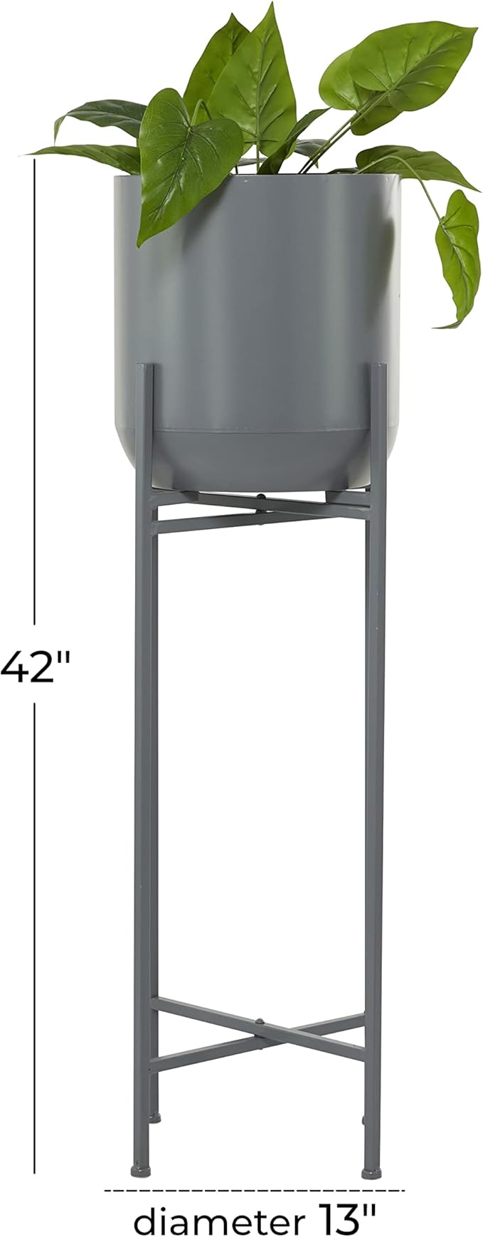 Deco 79 CosmoLiving by Cosmopolitan Metal Round Planter with Removable Stand, 13" x 13" x 42", Gray