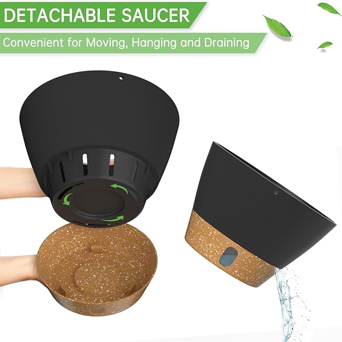- Snap-in Tray with Visible Water Level: The tray can be removed for easy cleaning of the flower pot. The self-watering flower pot with drainage holes can drain excess water to the tray, so the tray will store an amount of water for the plant(Longer than 7 days). And you can water the plants by looking at the water level.