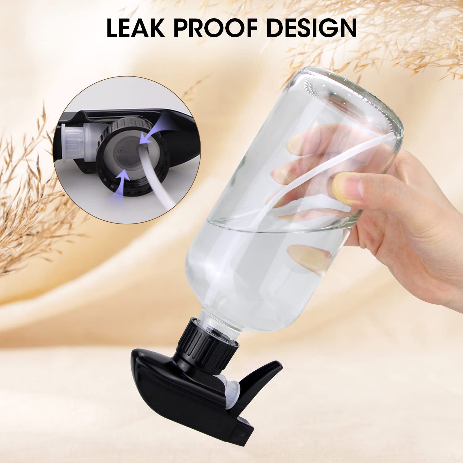 - No Leakage and Non-slip: The nozzle of the glass spray bottle is made of polypropylene, which makes the spraying smooth and not easy to leak.