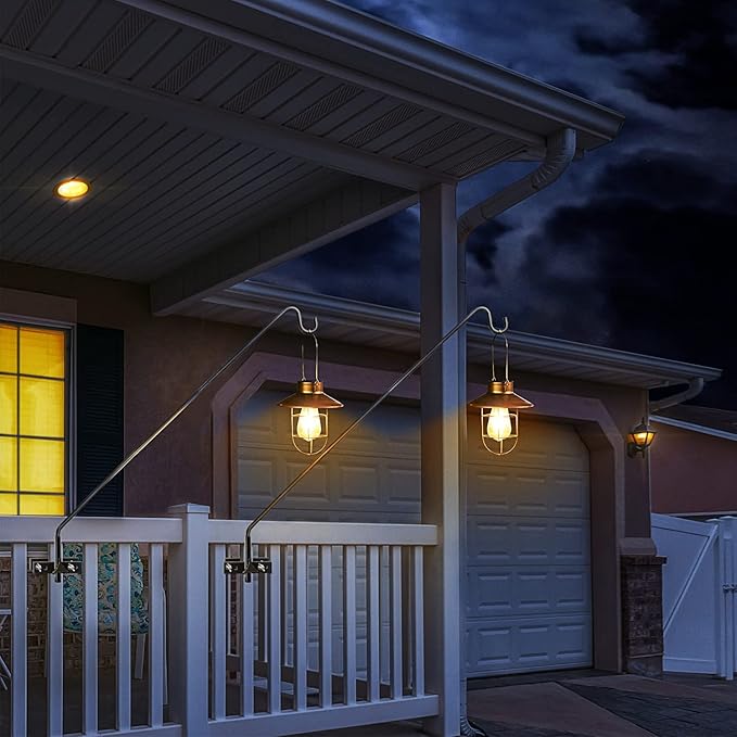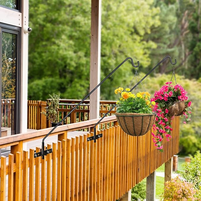 - 【Premium Quality】Our this fence deck hook is made of heavy duty steel.Weather proof black powder coated. A dark finish stunningly complements anything that hangs from it, adding elegance and beauty to your outdoor living space. Solid bracket and curved rod tip helps securely hold items.