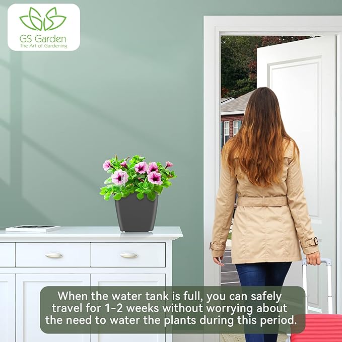 - GS Garden self-watering planters is an ideal plant pot for for All Outdoor/Indoor plants. The special water inlet design can avoid soil collapse and lead to excessive hardening of the flower soil. The root system can fully grow in the soft soil.Ideal for residential and commercial grades