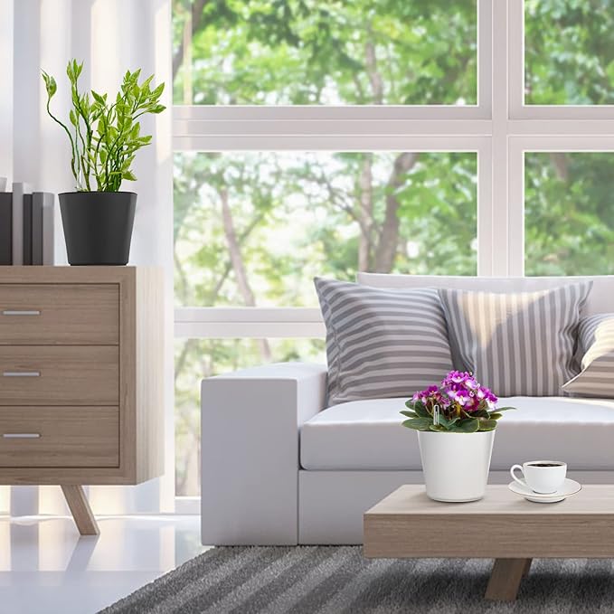 - GS Garden african violet pots function efficiently, taking care of your plants even when you can't. Self watering pots can help you keep your plants happy and thriving, even with your busy schedule. As a users, we are well aware of the joy and beauty that plants bring to the family. Self watering plant pot are specially designed planters for home gardening and modern decor. Suitable for all outdoor plants, herbs in kitchen, bedroom, study room, office, windowsill, balcony, garden, etc.