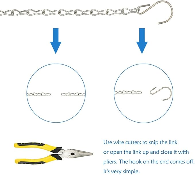 - ✅Adjustable Length: DIY hook, each hanging chain is equipped with hook and clip, you can shorten or extend or loop the chain to match your bird feeders and planters in different heights as needed. the small chain easy to install and remove