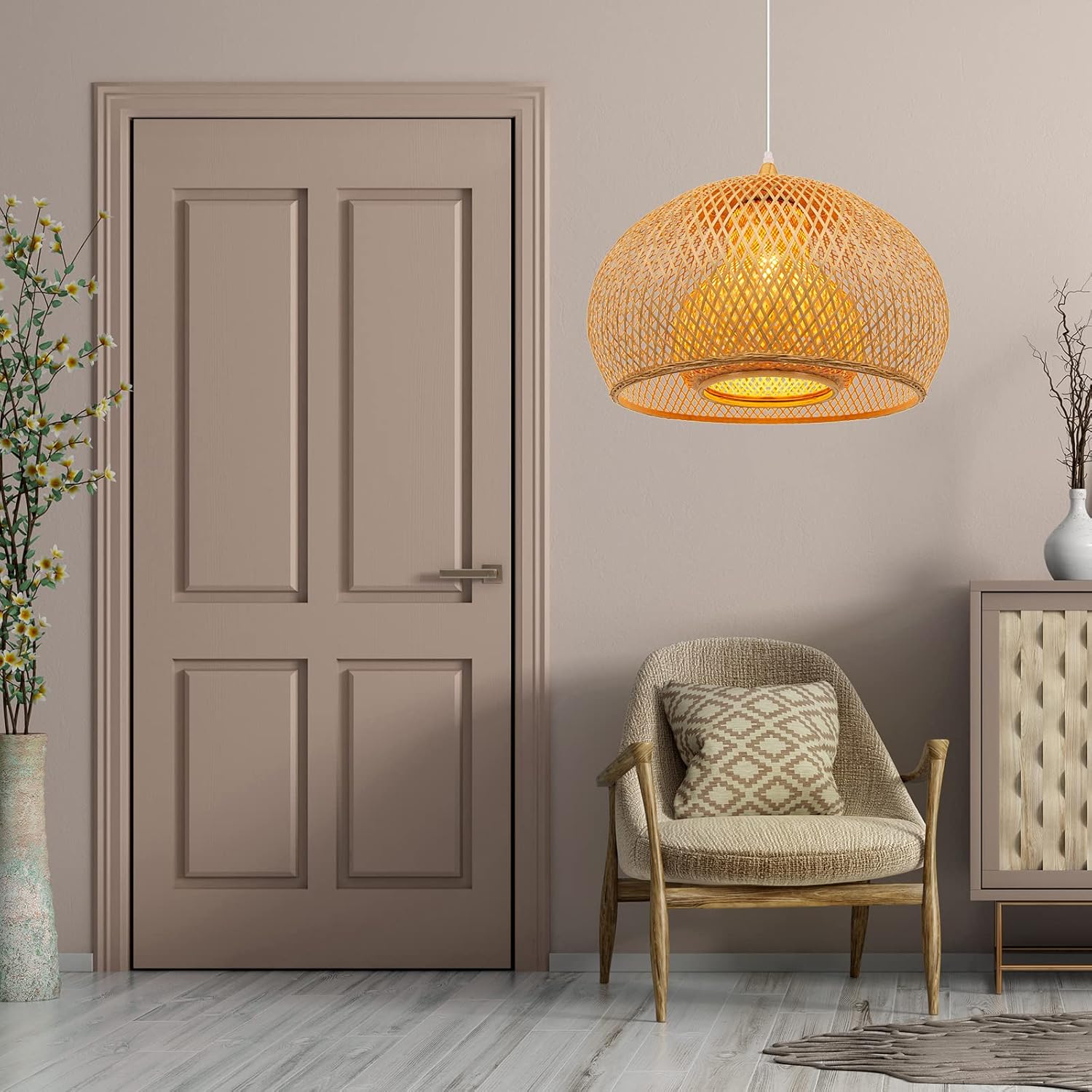 - Material:This handwoven chandelier is made of bamboo,the natural bamboo material is a vintage decoration for your room