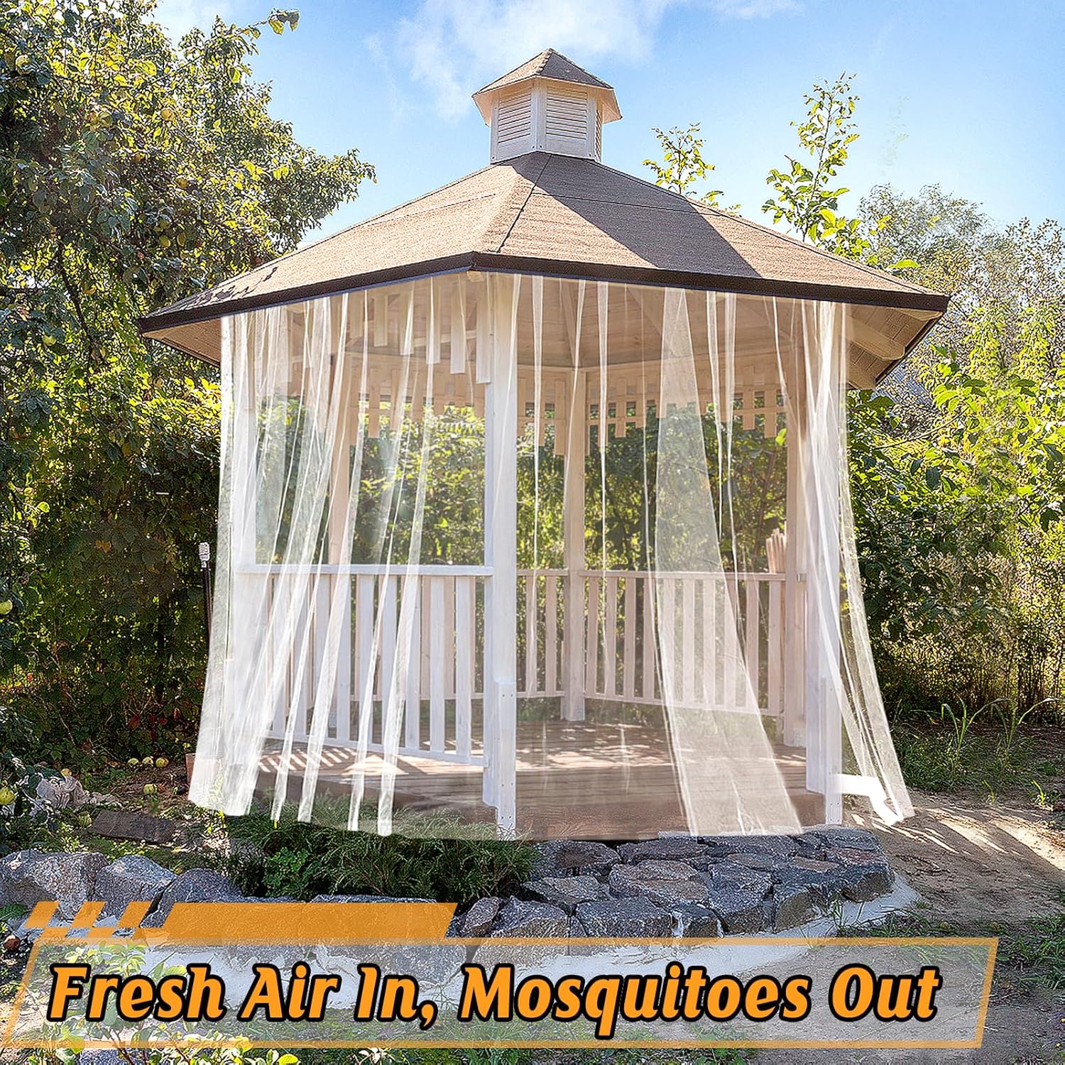 - Breathable & See-through: Our product is made with great consideration for breathability, transparency, and aesthetics. You can hang this mesh on a balcony, window, gazebo, terrace, porch, umbrella, RV camping, or bed. We believe that such a garden net will surely give you a good night's sleep undisturbed in the summer.