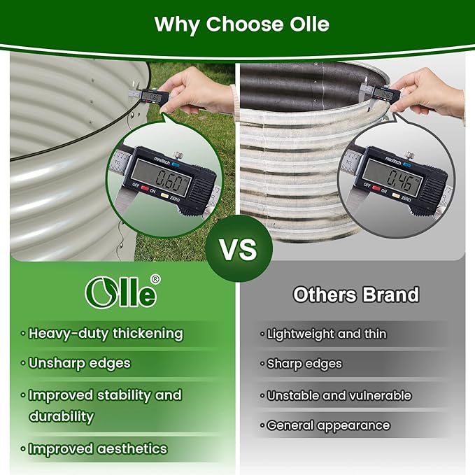 Olle 32" Tall, Raised Beds for Gardening Galvanized Raised Garden Beds Round Garden Bed Metal Flower Bed Outdoor, Backyard Garden Planter Box, Ivory