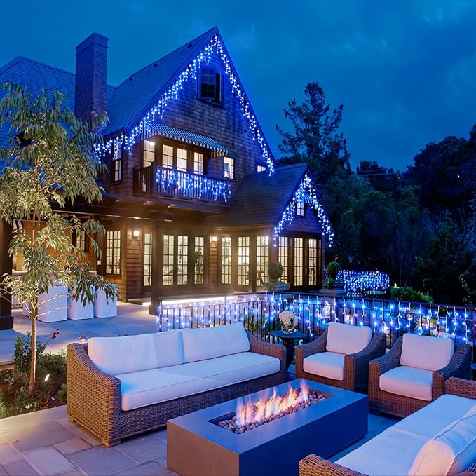 - ​Ideal Outdoor Decorations - The led icicle lights are IP44 Waterproof, which can withstand all kinds of weather, ideal for indoor and outdoor decorations. LED Christmas lights are perfect for Christmas, Halloween, Thanksgiving, wedding, party, Valentine's Day and any celebrating time. However, please keep the plug away from water.