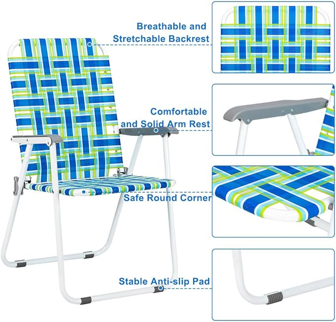 - UPGRADED COMFORT: Built with durable and breathable web, the camp chair is comfortable enough to use in every season. Updated higher backrest gives you more support when you lean back