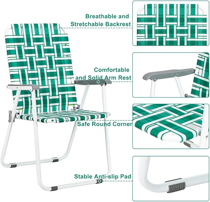 VINGLI Patio Lawn Webbed Folding Chairs1 Piece, Outdoor Beach Chair Portable Dining Chair for ir for Outdoor Yard, Garden(Green, Classic)
