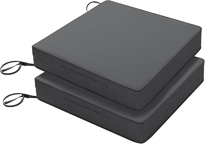 Favoyard Patio Chair Cushions 22 x 22 x 3 Inch Waterproof Outdoor Seat Cushions for Patio Furniture 3-Year Color Fastness Garden Sofa Couch Pads with Handle & Adjustable Straps Set of 2, Dark Grey
