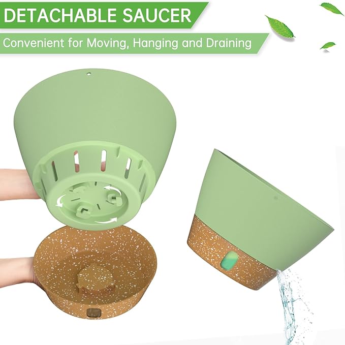 - Snap-in Tray with Visible Water Level: The tray can be removed for easy cleaning of the flower pot. The self-watering flower pot with drainage holes can drain excess water to the tray, so the tray will store an amount of water for the plant(Longer than 7 days). And you can water the plants by looking at the water level.