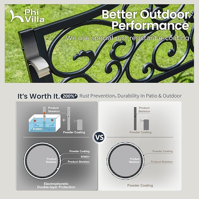 - 【Sturdy and Rust-Resistant】The Garden Bench is powder coated with rust-resistant finish, super smooth. This garden bench is made of cast iron backrest and metal frame,which is stable and sturdy for long-term use, durable and the Metal Bench perfect for use for years.