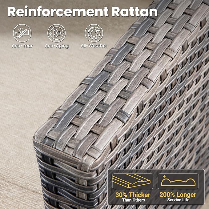 - Sturdy Frame & Wicker: Made of powder-coated metal frame and covered in weather-resistant PE rattan, handwoven wicker make the whole set much more sturdy.