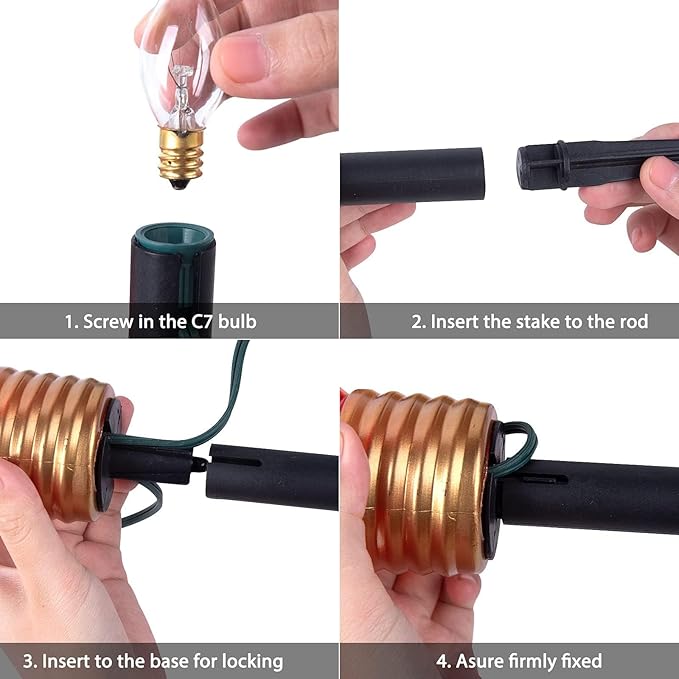 - Replaceable Design: Easily replace bulbs by turning the yard Christmas lights support on the base and removing the internal light bulb from the outer jumbo C9 bulb. Replace damaged bulbs by unscrewing them from the holder and gently installing new ones. Replace burnt-out fuses by sliding out the fuse chamber cover, replacing the fuse, and securely closing the cover