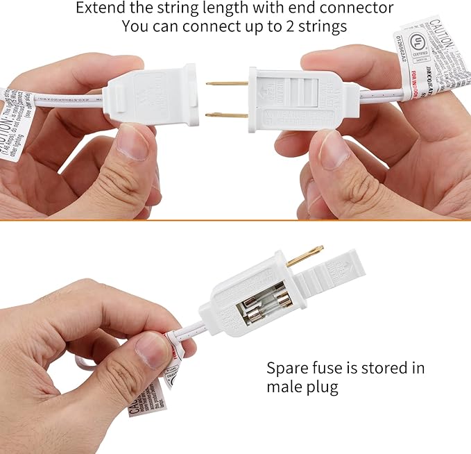 - 50 feet long string with 50+2 spare clear C9 Bulbs, end to end connectable