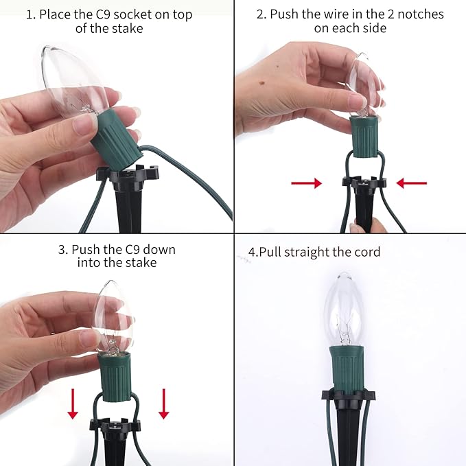 - Connectable Pathway Christmas Lights: The Christmas lights outdoor yard decorations can connect up to 60 bulbs together to make a 77 feet string. They are easy to fix to the ground, or you can hanging the C9 pathway lights anywhere