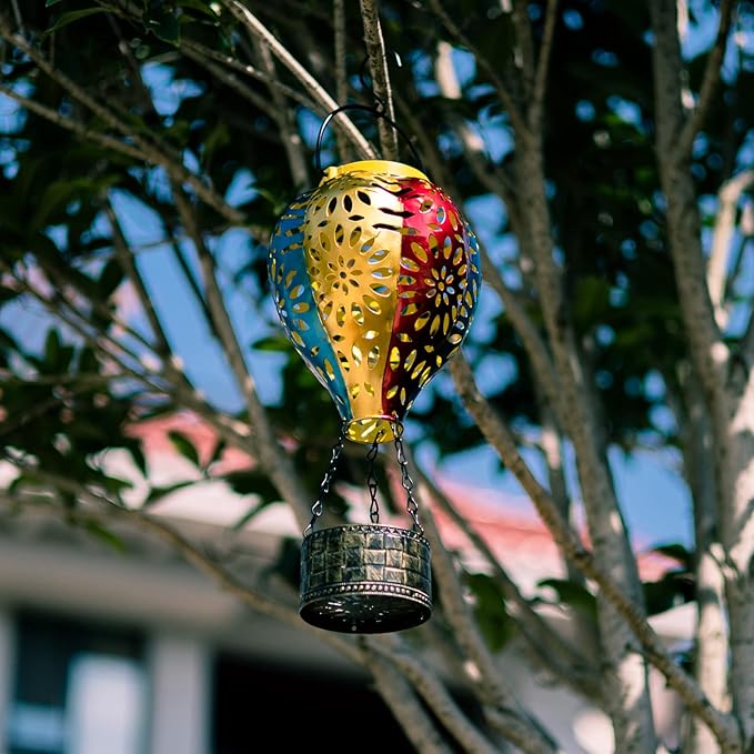- 【Wide Application】This solar lantern lights come with a metal "S" hook, can be hung anywhere easily, such as balcony, porch, pergola, tree or a shepherd hook. In addition, hot air balloon has rich meanings, which represents courages, hopes, dreams, romantic love, so it's a great gift for your family and friends.