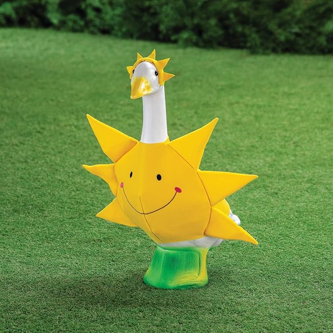 - Exclusive Eye-Catching Design: By GagglevilleTM, this outfit is specially designed to fit the large 23” goose statue. Sun goose outfit features bold, brilliant yellow fabric with a big, grinning face. Perfect for celebrating the summer solstice, brightening up your garden, or adding a touch of whimsy to your home décor.