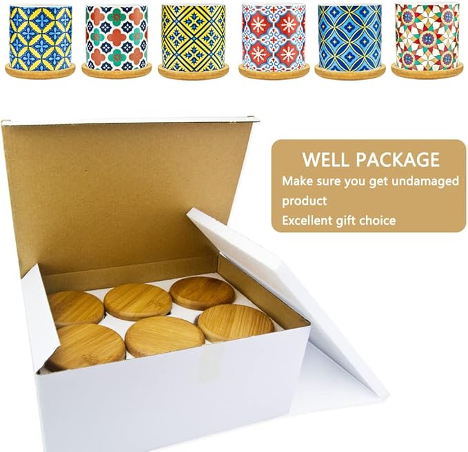 - Unique Style: 6 pack of succulent plant pots with bamboo trays in a bohemian style