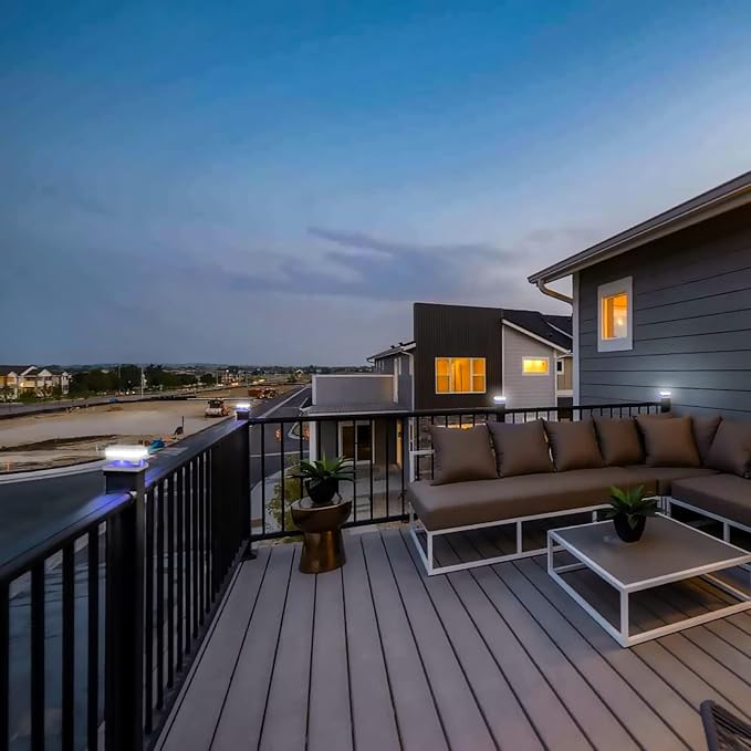 - Unique Design: Modern outdoor solar fence post light, each with 4 unique blue led around decorative, main lamp built-in 52pcs white SMD LED to provide 160lm/w 6000K white high brightness lighting, adding radiance and distinction to gardens, yards, or decks, creating a decent and well-lit lighting to your outdoor environment.