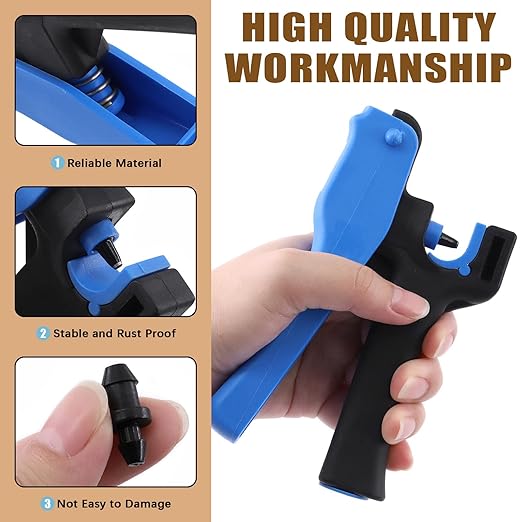 - đźšż [Drip Irrigation Tubing Hole Punch]đźšż ---------- The drip irrigation hole punch tool is designed for drip irrigation pipe punch and 1/4 fitting insertion; hold the handle of the drip irrigation pipe punch, clamp the drip irrigation pipe and press gently until the drip irrigation pipe is pierced; the punch tool is made of high quality plastic and metal, practical and durable, not easy to rust and damage, and can be used for a long time.
