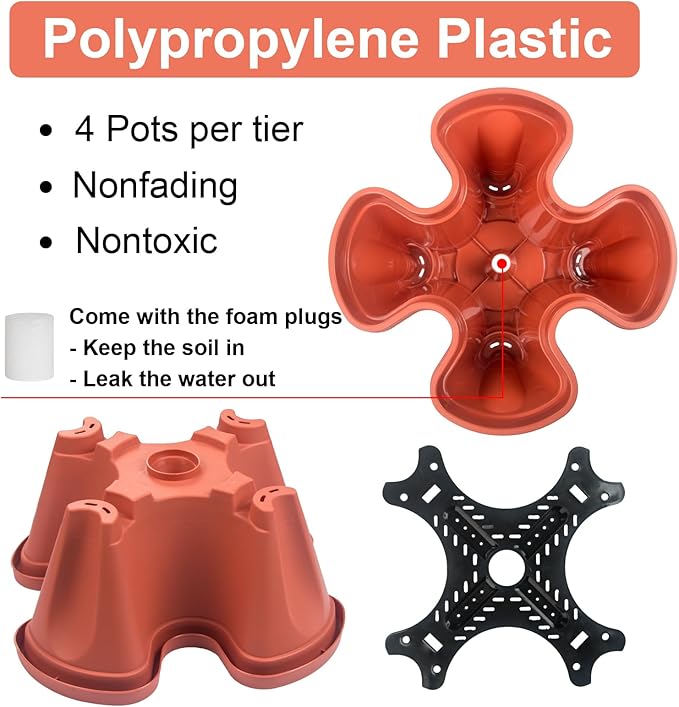 DUNCHATY Stackable Planters 5 Tier Vertical Garden Planting Tower Planters Strawberry, Herb, Flower, and Vegetable Planter Indoor Outdoor Gardening Pots with Removable Wheels and Tools