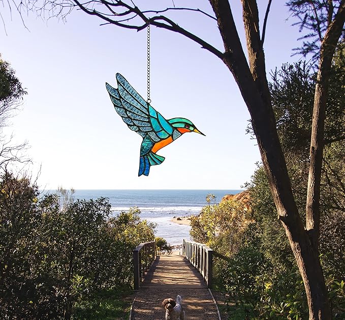 - The bright colors of the stained glass bird suncatcher are very beautiful when hung on the window. When the sun shines through the glass, it can reflect the bright colors, which will make your home beautiful.