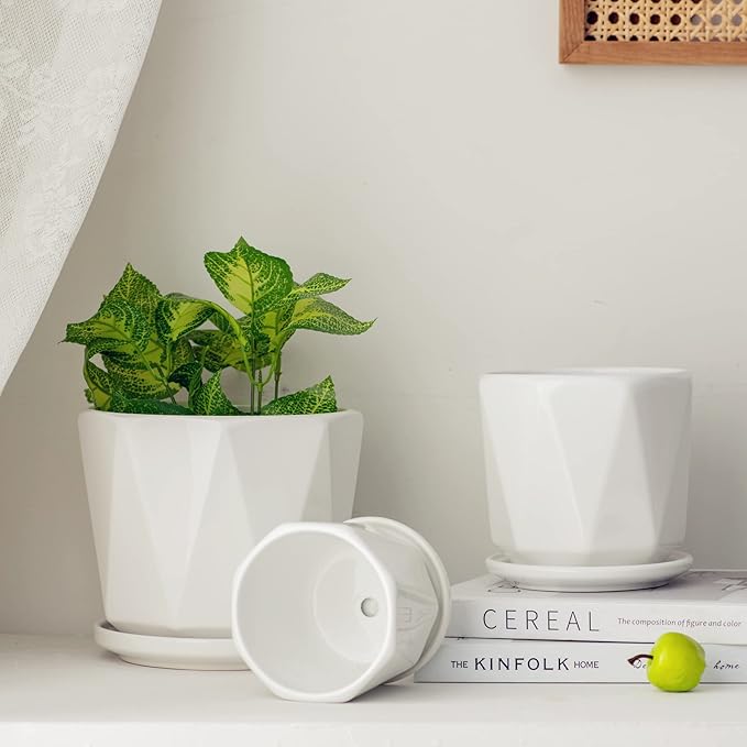 - Size and Dimensions: Set of 3 ceramic white planter pots in different sizes for indoor and outdoor use