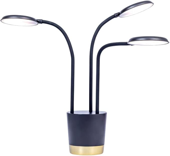 - The Trio Light is adjustable, suiting plants up to 12 inches tall, features three arms, each with a 5W LED light, for a total of 15W, and includes a 6 foot power cord
