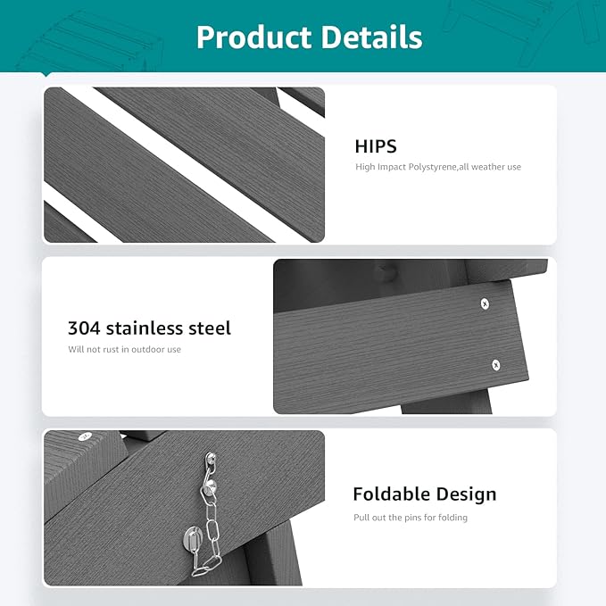 - WEATHER RESISTANT & WATERPROOF — Made of HIPS:High Impact Polystyrene, look and feel like real wood, composite, weather resistant, weatherproof, low maintenance, the Adirondack Footstool is built to withstand a range of climates including hot sun, snows, and strong coastal winds and does not dent, crack, peel like the wood.