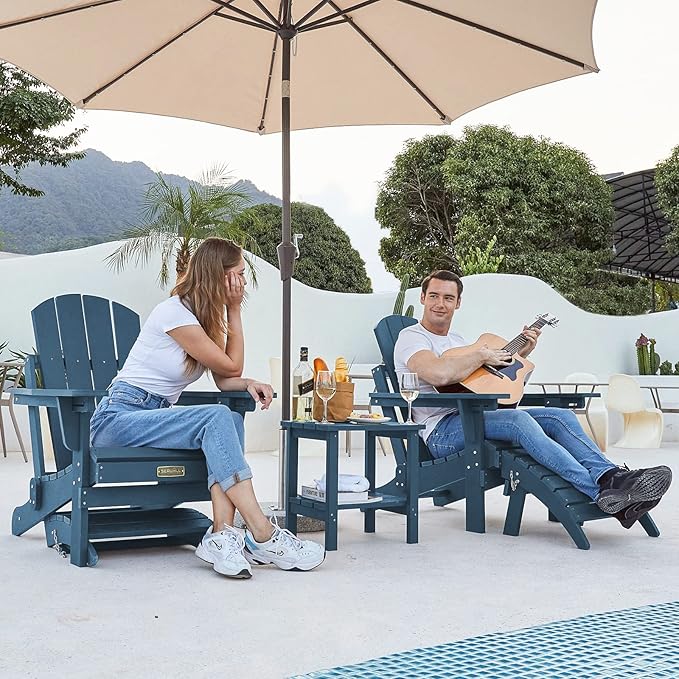 SERWALL Folding Adirondack Footrest Without Assembly, All Weather Use Adirondack Footstool, Blue