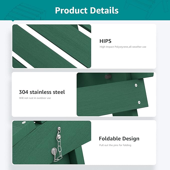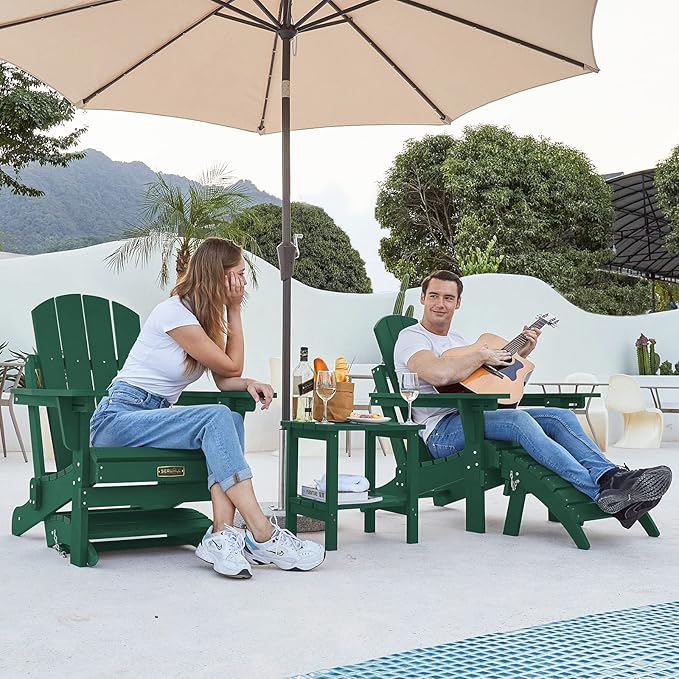 SERWALL Folding Adirondack Ottoman Without Assembly, Green