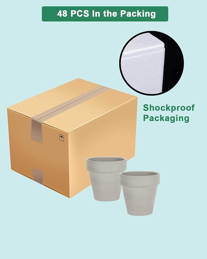 vensovo 48 Pcs 2" Tiny Terracotta & Terra Cotta Pots with Drainage - Grey Small Mini Clay Ceramic Pottery Planter Ideal for Indoor/Outdoor Plants, Crafts, Wedding Favors