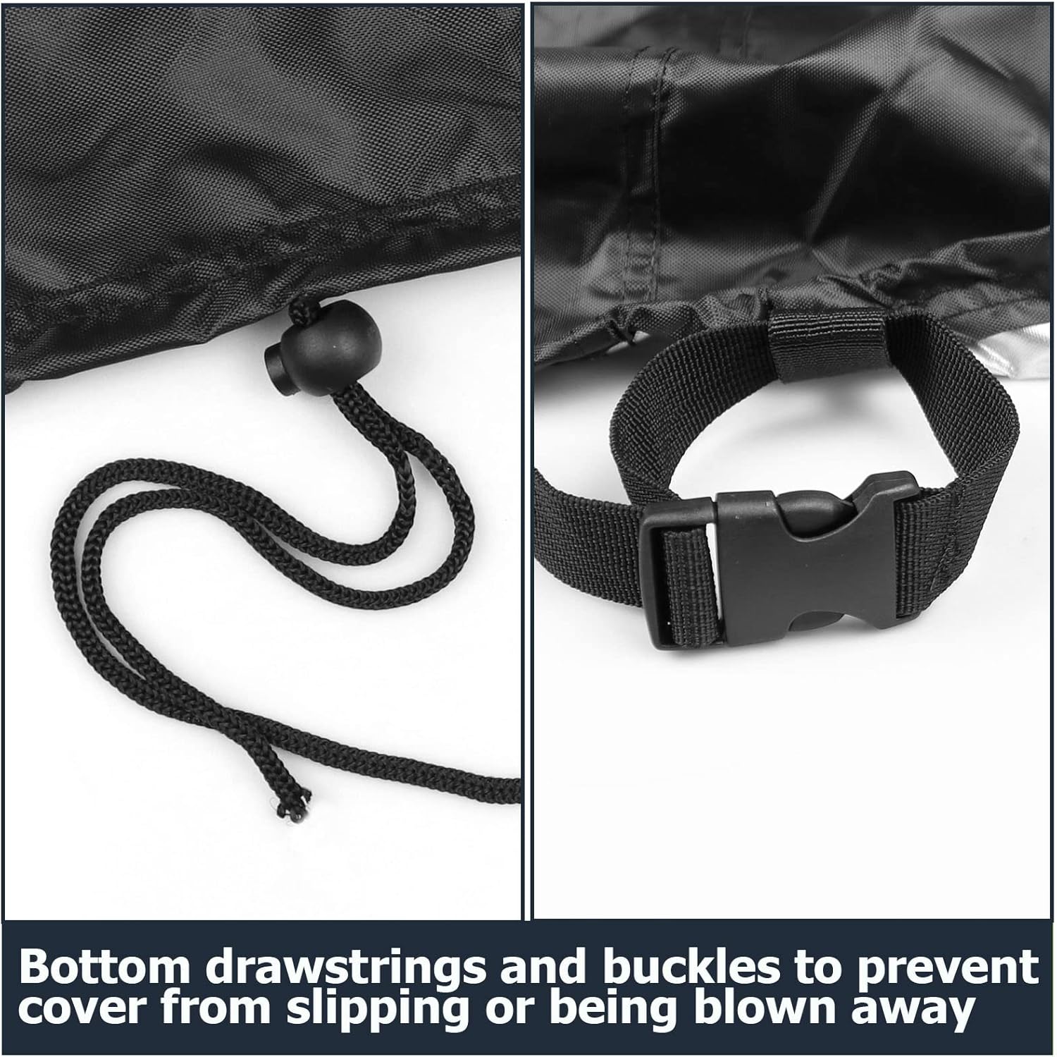 - STAY FIRMLY ON YOUR GRILL: The adjustble straps with buckles and drawing string at the bottom can flexibly adjust the tightness of the cover so that it can sit and stay firmly over your propane gas grill, preventing it from being blown away by the wind.