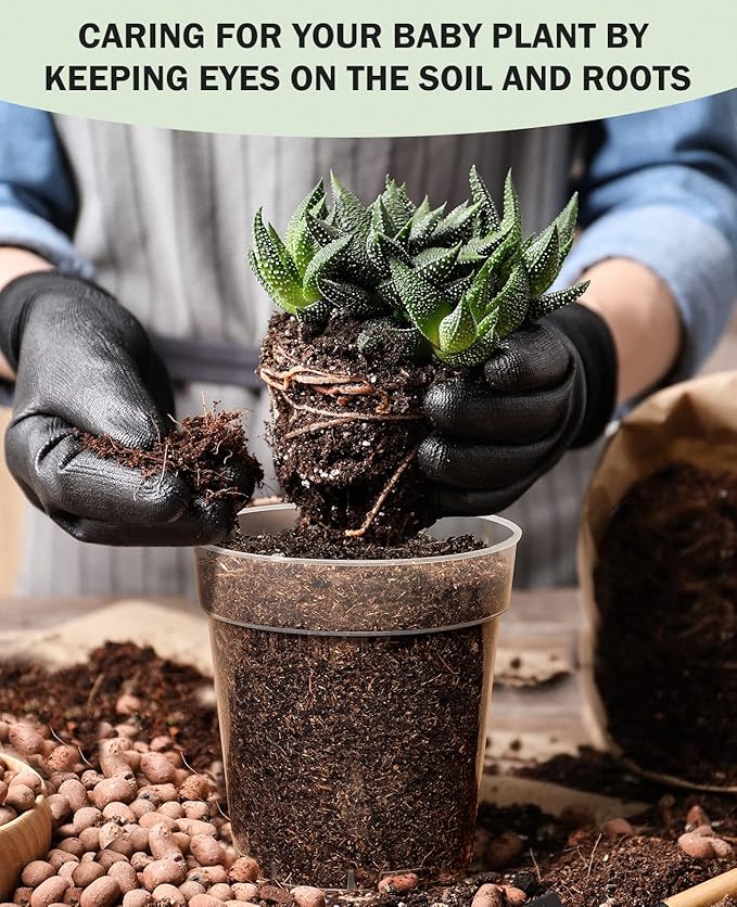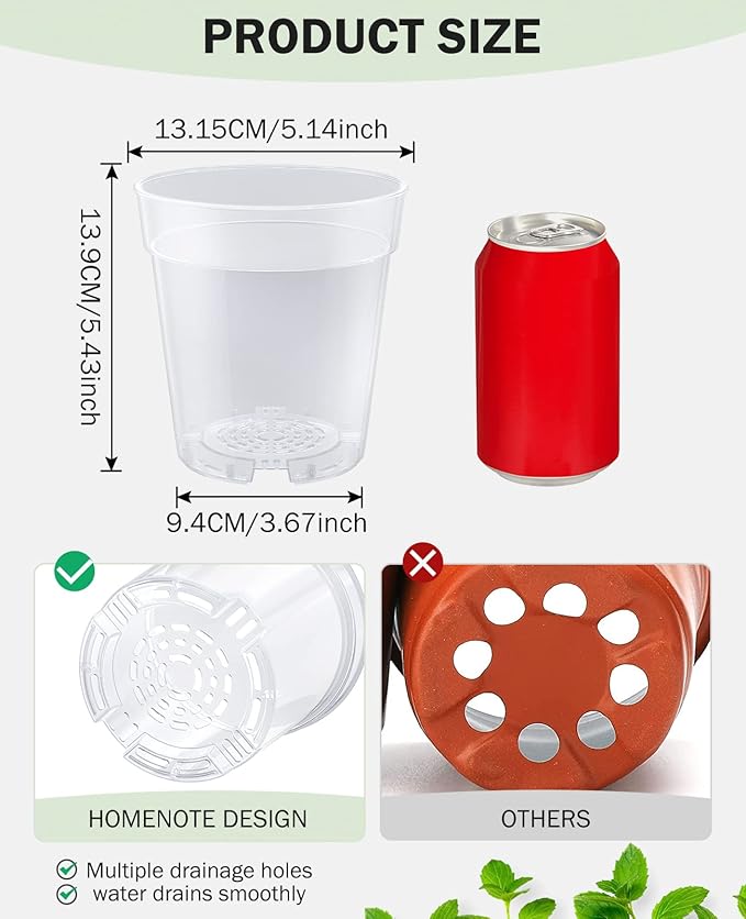 - 🌱【Transparent View of Soil and Root System】Still worried about your plant's rotten roots? Not sure how much you should water? Then you need such clear nursery pots. Compared with the "semi-transparent" flower indoor seedling pots on the market, you can have a clearer and more intuitive view of the soil moisture and the health of your plant's root system, which will help you to confirm the amount of watering and take better care of your plant's growth by these pots for plants.