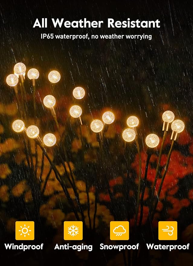 - Swaying with Wind, Like Magic Appearing in Your Garden - When the breeze blows, solar path lights sway with the wind, dance like fireflies in garden. Our solar swaying lights use more flexible stem than other garden solar lights, easier to move with wind, without clumping together, and bend to the direction you want. Get now and use your imagination in decorating your yard