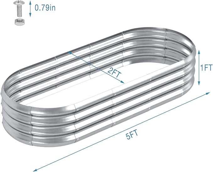 HOXHA Planter Raised Beds, 5X2X1 FT Land Guard Oval Galvanized Steel Planter Box, Metal Raised Garden Bed kit, for Outdoor Growing Fresh Veggies, Flowers, Herbs, and Succulents