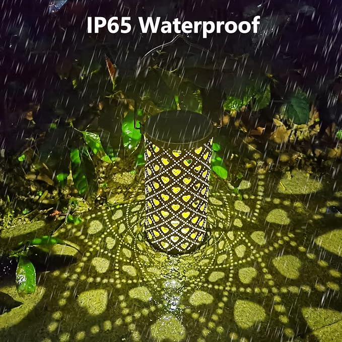 - Graceful Decorative Design - The retro appearance, with gold copper color and hollow out metal veneer, the solar outdoor lanterns casts bright and warm light in darkness, accompanied by gorgeous and graceful hearts patterns, adding a romantic atmosphere to the surrounding environment.