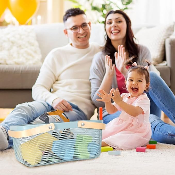 Garden Harvest Basket,Delicate Harvest Basket for Garden Vegetables,Practical Metal Mesh Wire Basket with Handle Suitable for Bathroom,Cabinet,Kitchen(Blue)