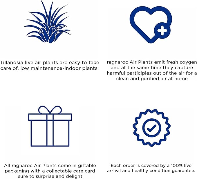 - EASY-CARE PLANTS INDOORS LIVE: Thrives in bright, indirect light. Mist the air plants 2-3 times per week or soak them in water for 20-30 minutes weekly. No soil required, making this variety pack of live house plants perfect for beginners and seasoned plant enthusiasts alike.