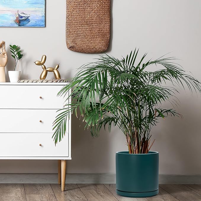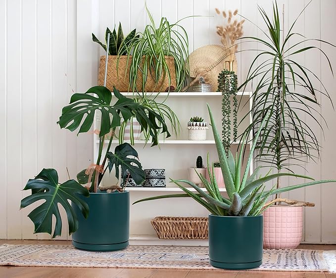 D'vine Dev 8 Inch & 10 Inch Ceramic Planter Pot for Plants with Drainage Hole and Saucer, Large Plant Pots Set, Teal, 94-G-L-9