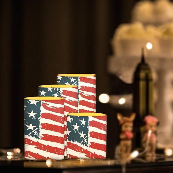 Flameless Electric Candles Decoration Lamp with Remote Timer Control Long Lasting for Fourth of July Party Decoration Home Indoor Outdoor Decor Pack of 4, American Flag Fashion