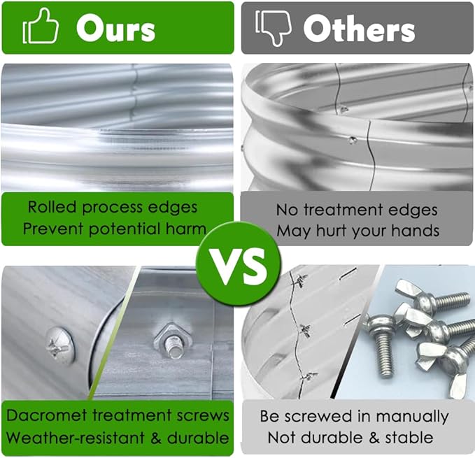 - DURABLE & STABLE: Made of premium galvanized steel sheet features long-lasting use during kinds of weather, more stable and durable than wooden planters. The wave stripe and reinforced corner enhance the structure and expands life span of garden bed. 17.3 inch tall design brings more comfortable gardening experience