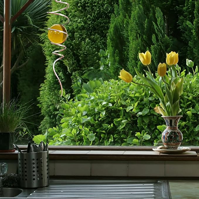 - 【Unique Spiral Design】The gazing ball spiral tail is an unique hanging ornament ,Also it can help to stabilize 3D wind spinners or yard decor from swing when it rotate.When the spiral tail rotates to the left, the glass ball seems to move upwards,when the spiral tail rotates to the right, the glass ball seems to moves downward,the glass ball seems to like floating and dancing in air, presenting a magical optical illusion!