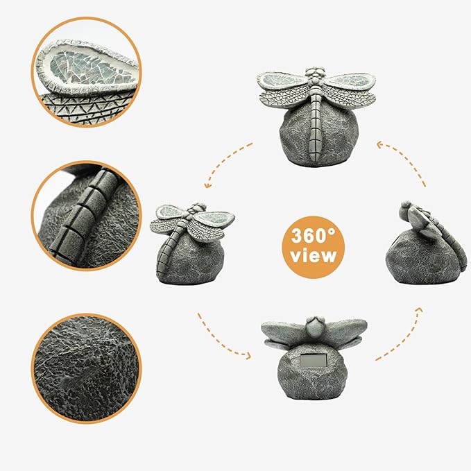 - 【Cute Outdoor Garden Decorations】This solar dragonfly garden decor is made of high quality resin.It looks dorable at day and the solar LED lights will Illuminate your front yard,lawn,patio,balcony or garden at night.