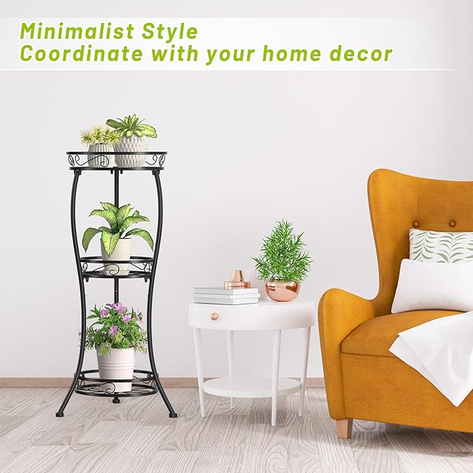 - 【Attractive Black Metal Plant Stand】: Consists of wrought iron inspired design trays and curved lines. Elegant and minimalist appearance coordinate with all your home decor styles and definitely turn your home or garden into a bright and modern space.