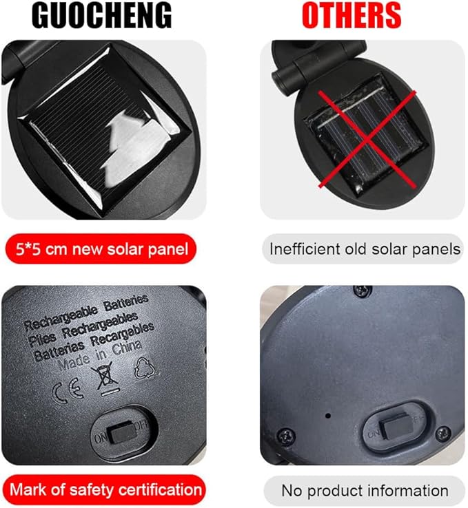 - 【Safety & Waterproof】 Our solar lights will not overheat after prolonged use. There are safe for children and pets to touch and can also be placed next to plants. Low voltage lamp bead and IP65 Waterproof solar panel, makes these solar lights long lasting and durable, they work well even in rainy and snowy day.
