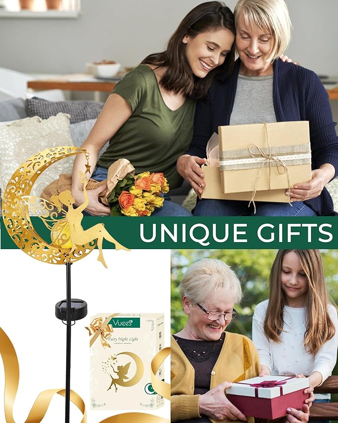 - WHAT'S INCLUDED: You will receive a solar fairy garden light stake, a user manual, and a packing box. We offer a worry-free 18-month warranty and provide friendly customer service with a 24-hour response time. Upon receiving the fairy solar lights, please press the ON button and keep the solar panel in darkness to test if the lights illuminate. Christams decoration gifts for mom, grandma and family.
